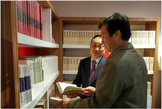 龔曙光董事長向蔡振紅部長介紹集團近年來出版的重點圖書和精品圖書。