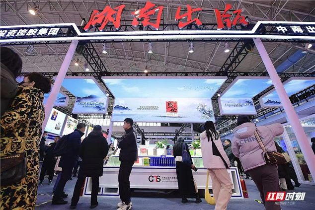 本屆訂貨會,湖南出版展臺凸顯“文化+科技”的深度融合。在精品書臺上方的天幕屏上,一幅輝映湖湘文化神韻的人文山水長卷徐徐展開,滾動播放著2024年度“中南好書”的書封和簡介。設計布展方中南國際會展相關負責人告訴記者,這是通過“交互藝術天幕”等數字化設施,采用前沿數字技術,營造出的沉浸式文化空間,多層次呈現了湖南出版文化與科技融合發(fā)展的新成就、新風貌。
